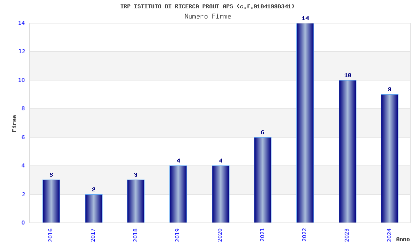 | Anno | Firme | Importi | Media | Naz. | Reg. | Prov. | Comu. |