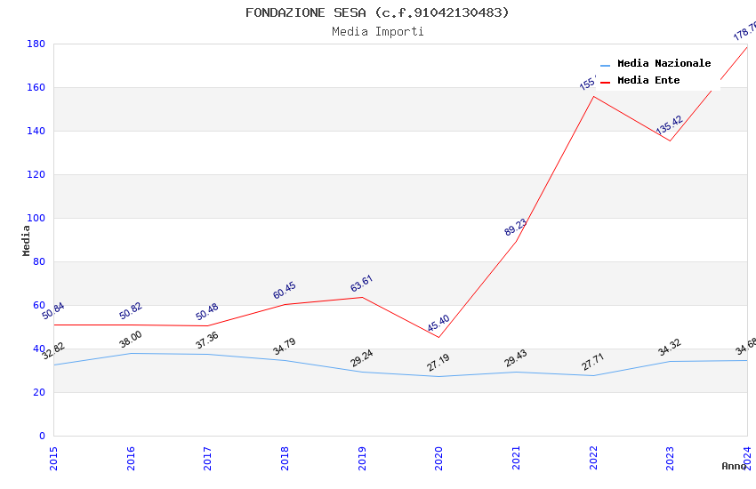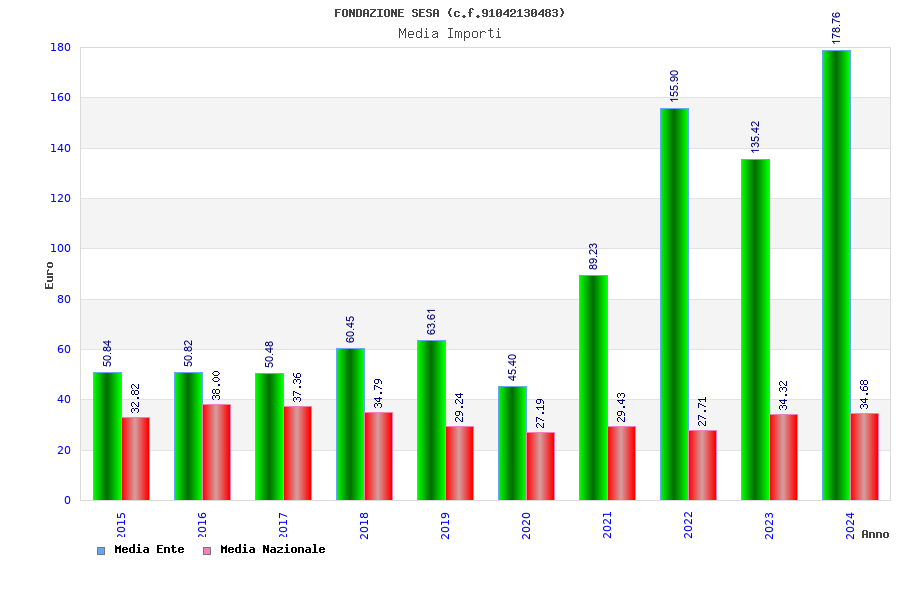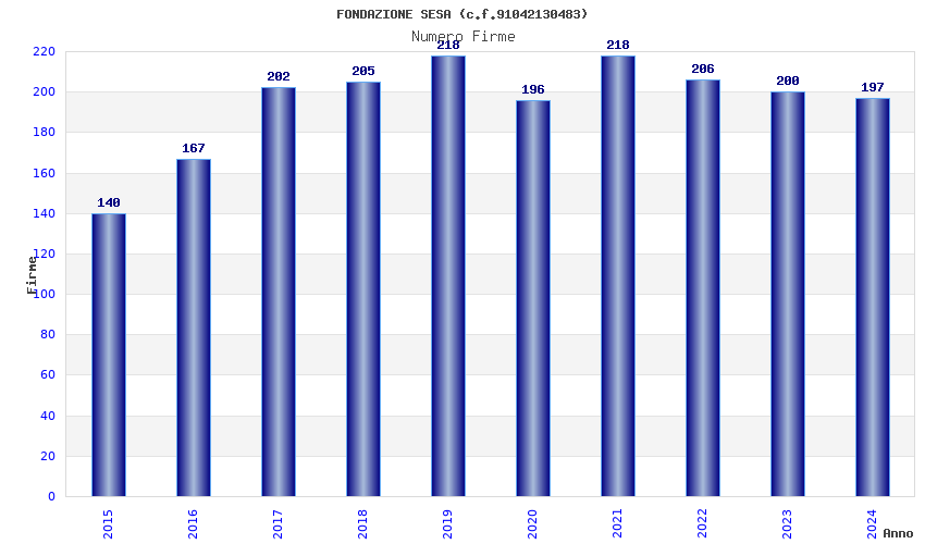 | Anno | Firme | Importi | Media | Naz. | Reg. | Prov. | Comu. |