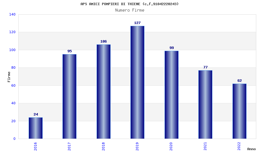| Anno | Firme | Importi | Media | Naz. | Reg. | Prov. | Comu. |