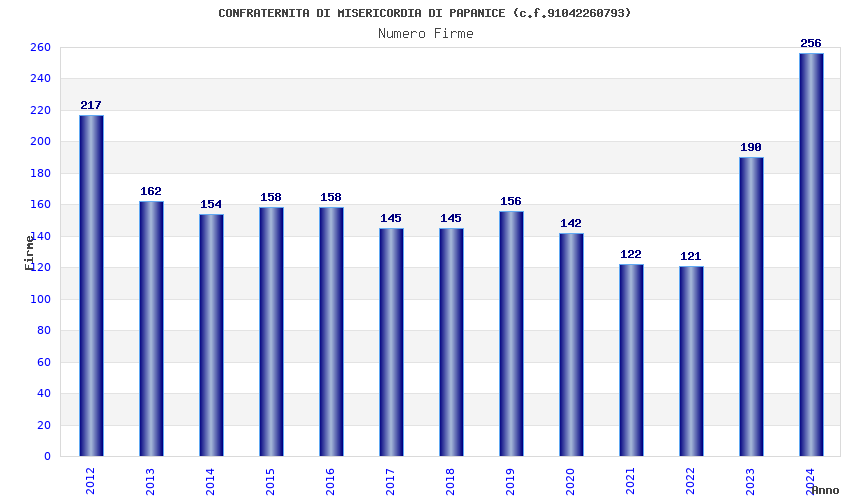 | 2024 | 256 | 7.700,11 | 30,08 | 6.688 | 140 | 9 | 3 |