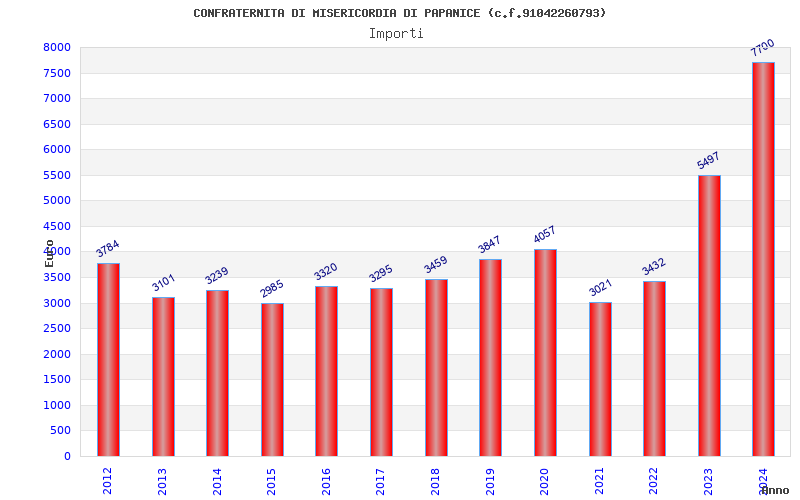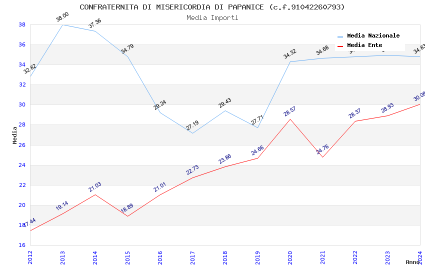 | Anno | Firme | Importi | Media | Naz. | Reg. | Prov. | Comu. |