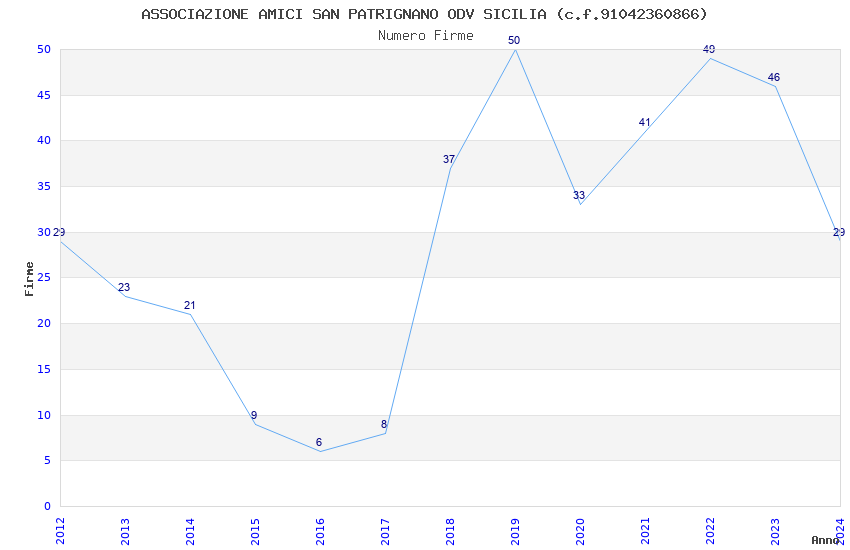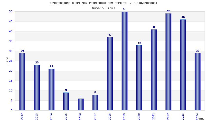 | Anno | Firme | Importi | Media | Naz. | Reg. | Prov. | Comu. |
