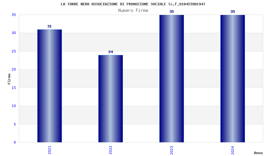 | Anno | Firme | Importi | Media | Naz. | Reg. | Prov. | Comu. |