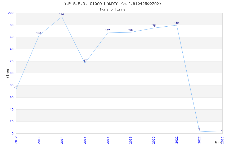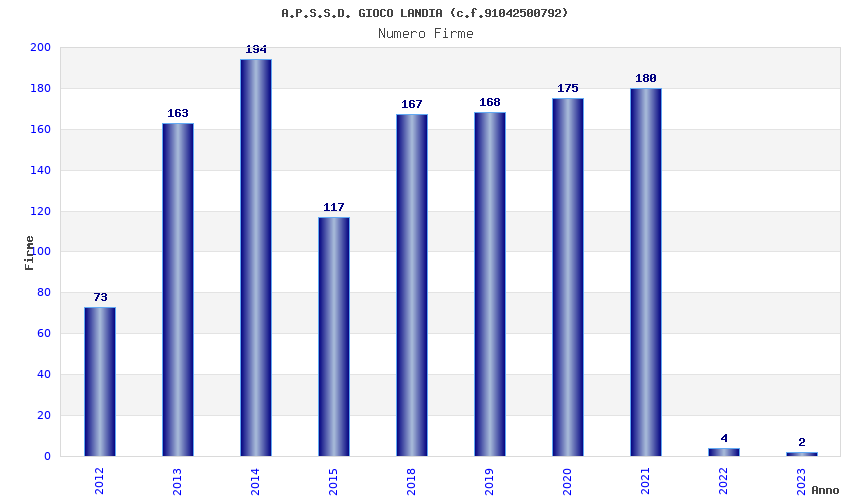| Anno | Firme | Importi | Media | Naz. | Reg. | Prov. | Comu. |