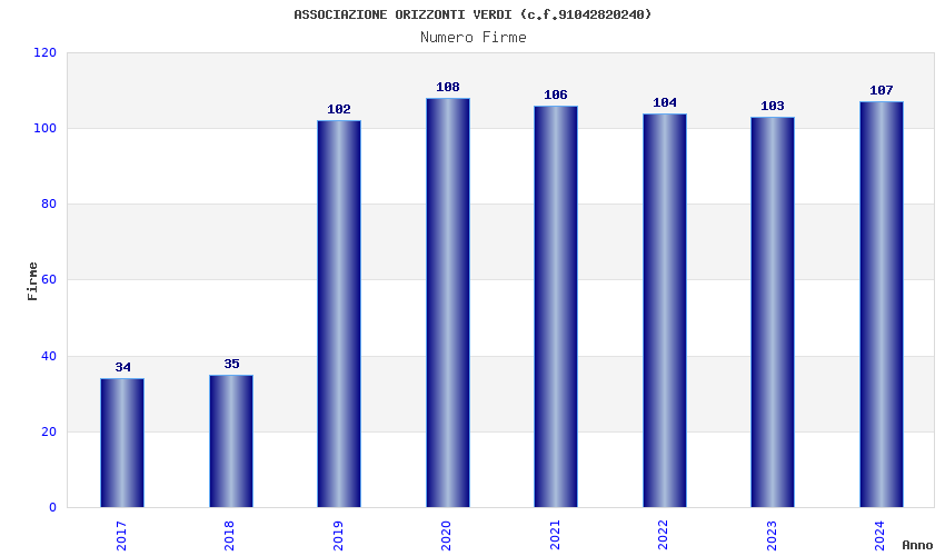 | Anno | Firme | Importi | Media | Naz. | Reg. | Prov. | Comu. |