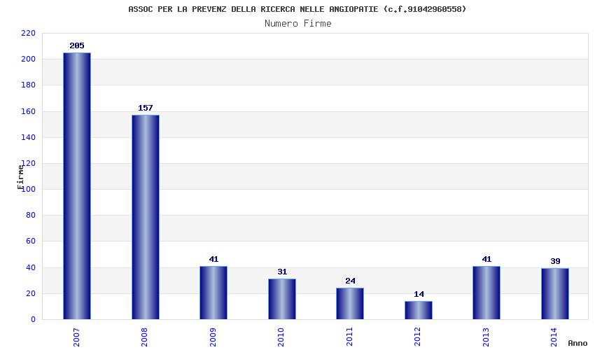 | Anno | Firme | Importi | Media | Naz. | Reg. | Prov. | Comu. |