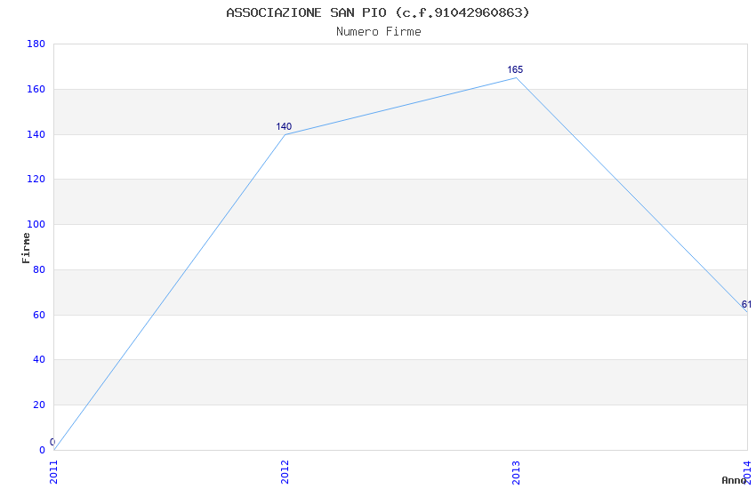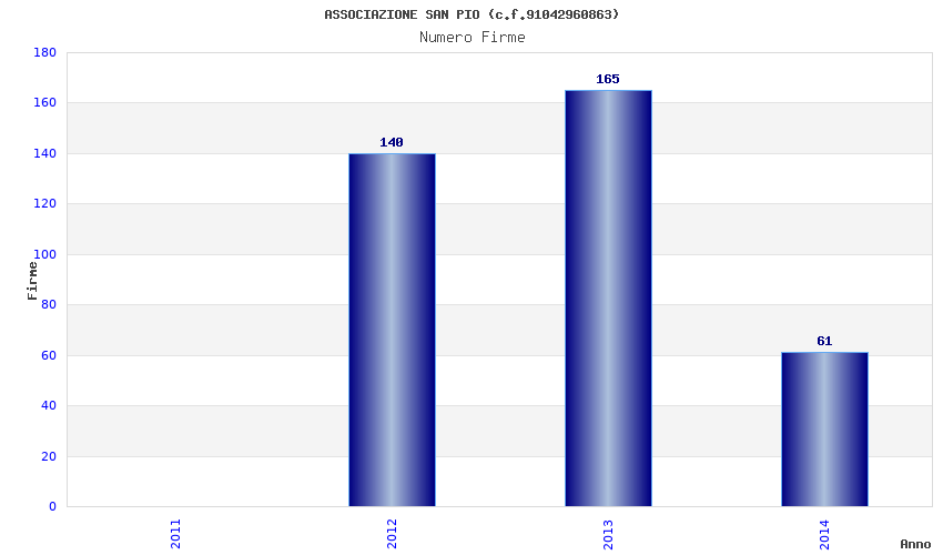 | Anno | Firme | Importi | Media | Naz. | Reg. | Prov. | Comu. |