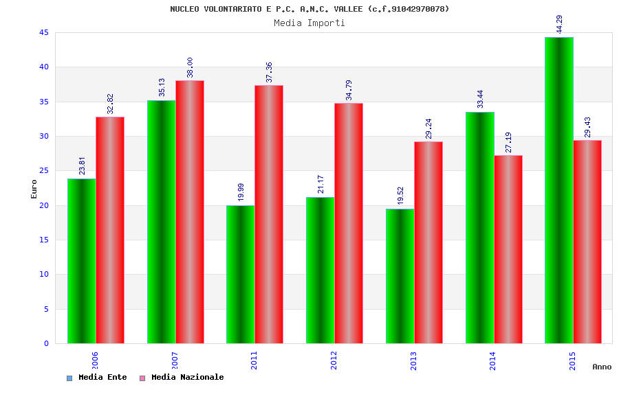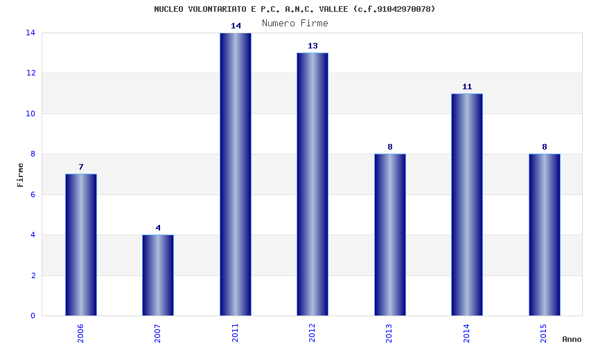 | Anno | Firme | Importi | Media | Naz. | Reg. | Prov. | Comu. |