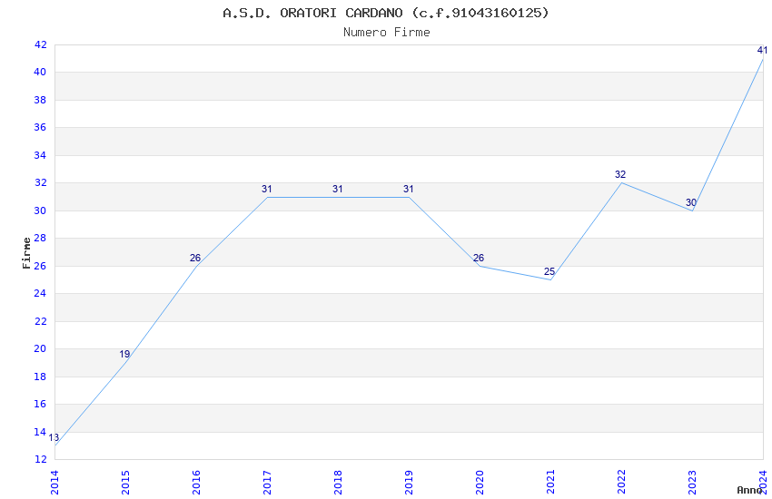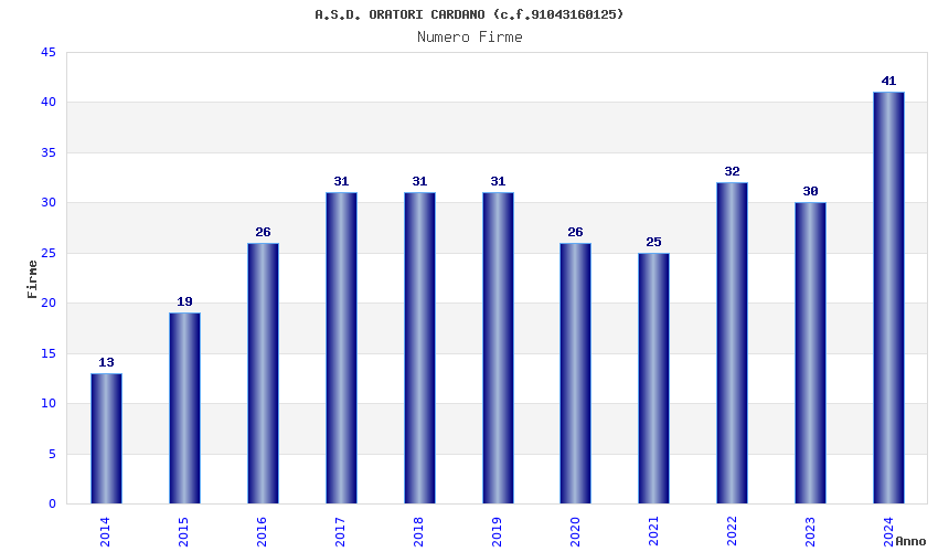 | 2024 | 41 | 1.134,19 | 27,66 | 35.001 | 7.068 | 596 | 8 |