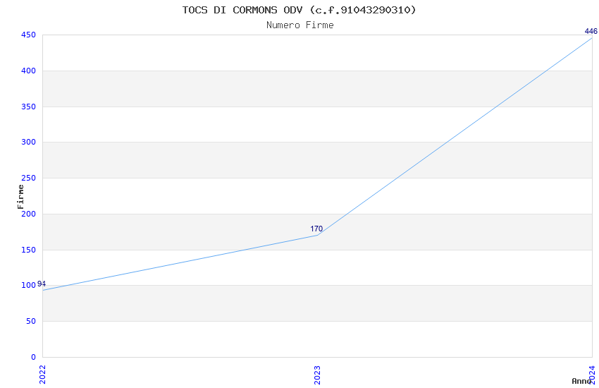 | Anno | Firme | Importi | Media | Naz. | Reg. | Prov. | Comu. |