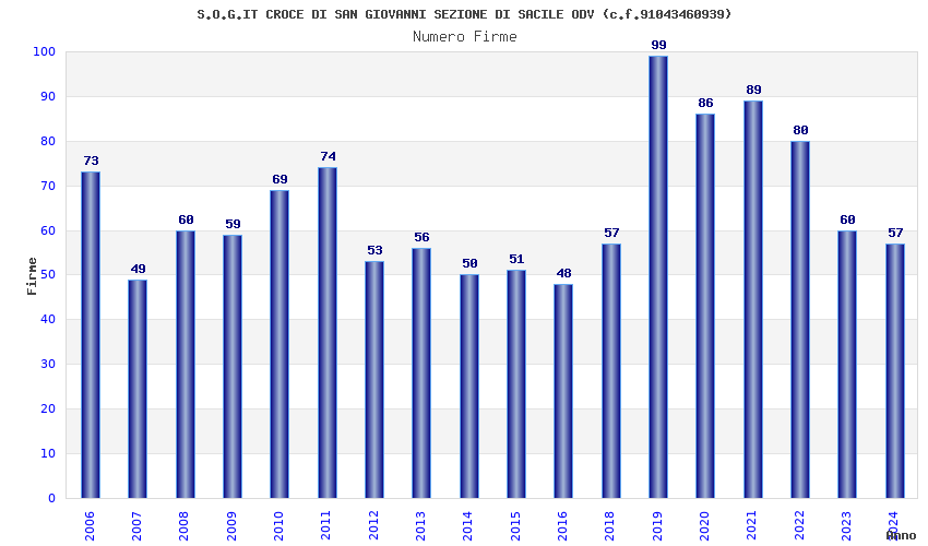 | Anno | Firme | Importi | Media | Naz. | Reg. | Prov. | Comu. |
