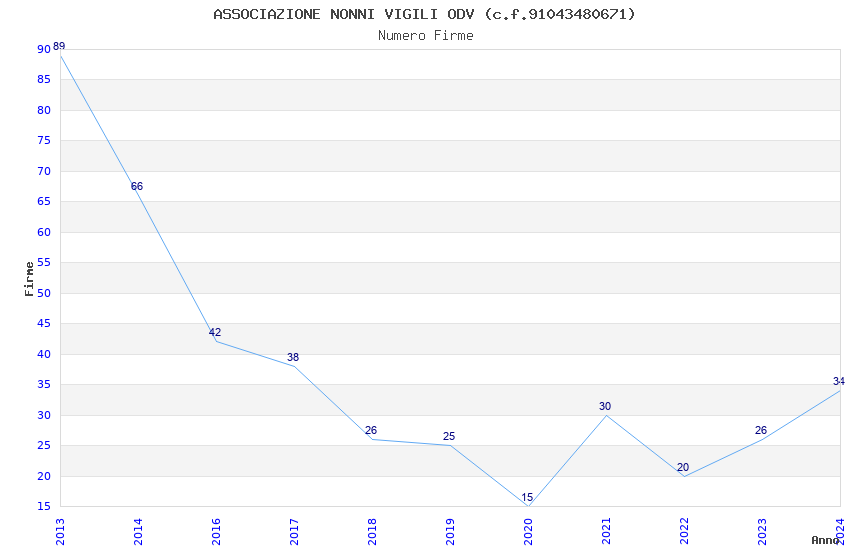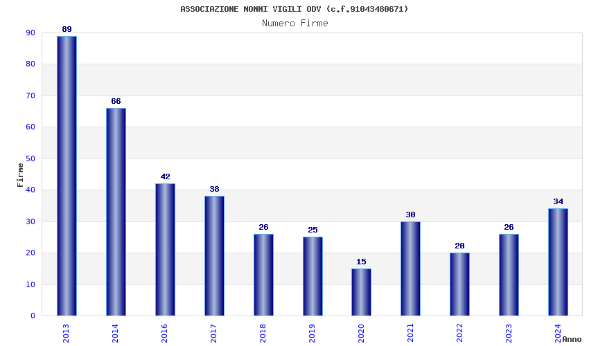 | Anno | Firme | Importi | Media | Naz. | Reg. | Prov. | Comu. |