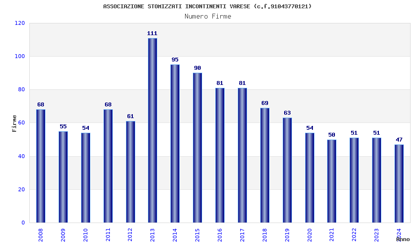 | Anno | Firme | Importi | Media | Naz. | Reg. | Prov. | Comu. |