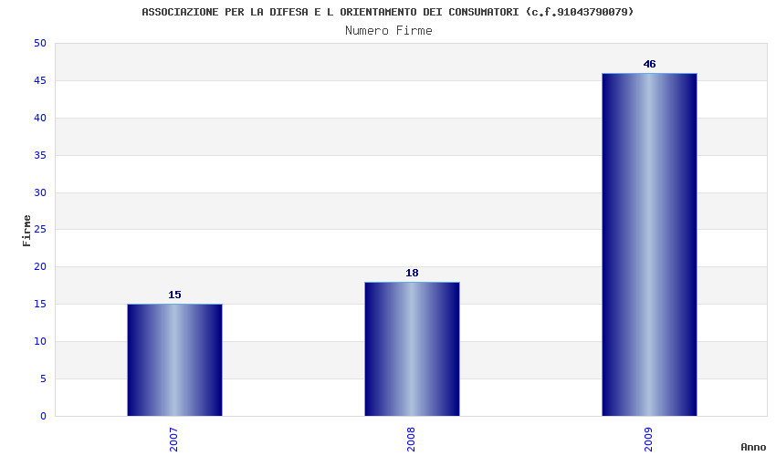 | Anno | Firme | Importi | Media | Naz. | Reg. | Prov. | Comu. |