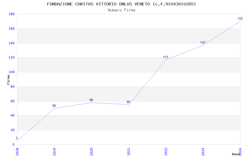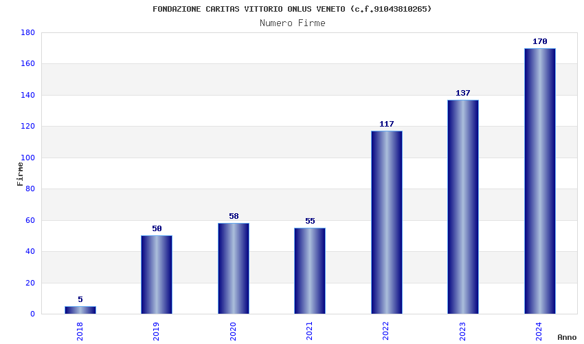 | Anno | Firme | Importi | Media | Naz. | Reg. | Prov. | Comu. |