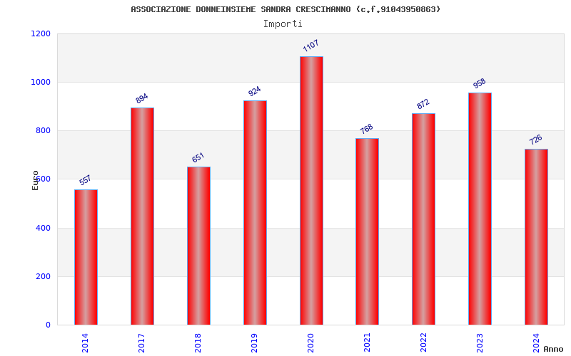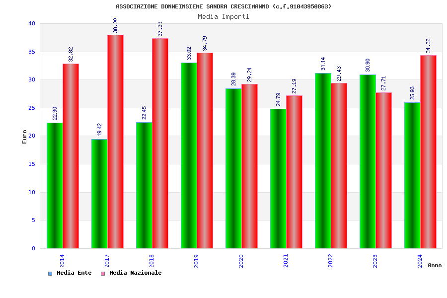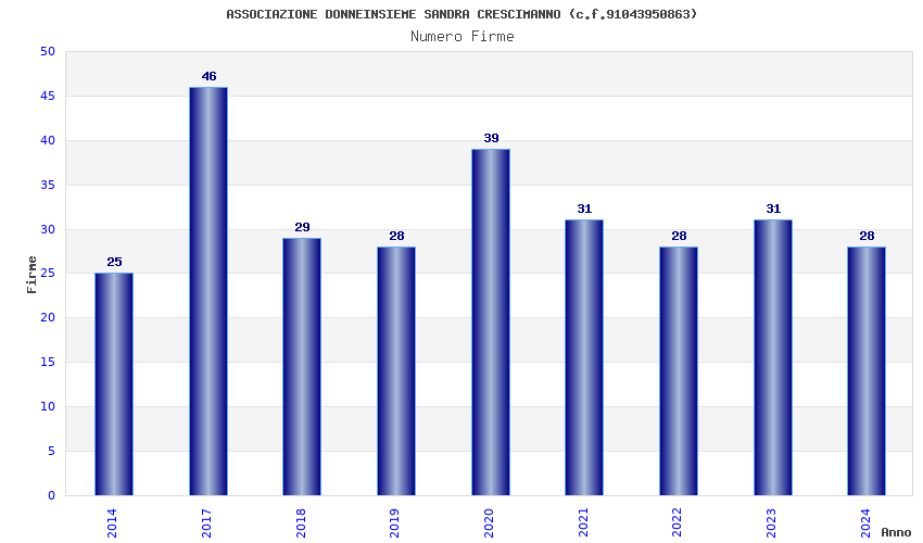 | Anno | Firme | Importi | Media | Naz. | Reg. | Prov. | Comu. |