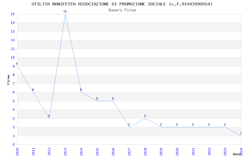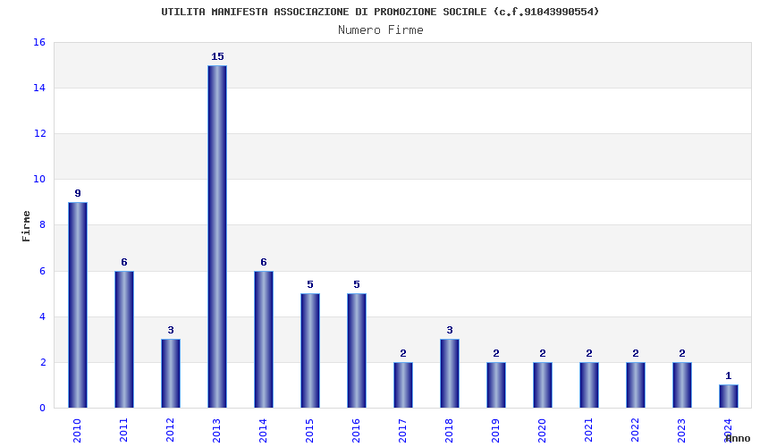 | Anno | Firme | Importi | Media | Naz. | Reg. | Prov. | Comu. |