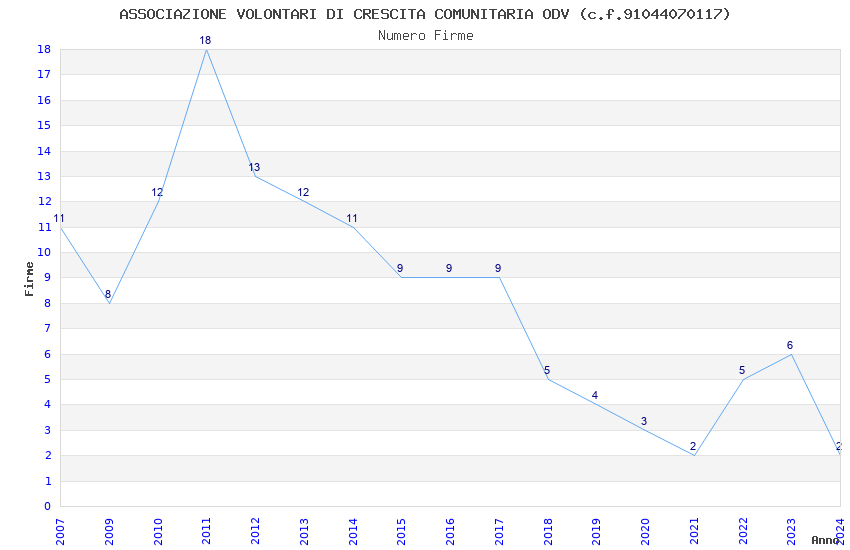 | 2011 | 18 | 687,15 | 38,18 | 23.074 | 704 | 67 | 35 |