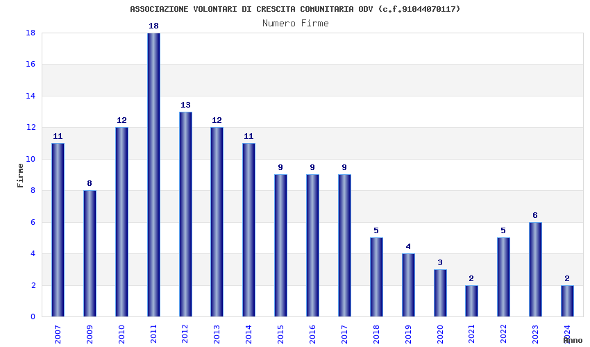 | Anno | Firme | Importi | Media | Naz. | Reg. | Prov. | Comu. |