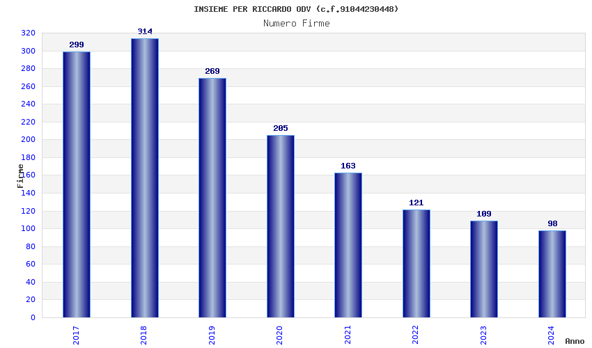 | Anno | Firme | Importi | Media | Naz. | Reg. | Prov. | Comu. |