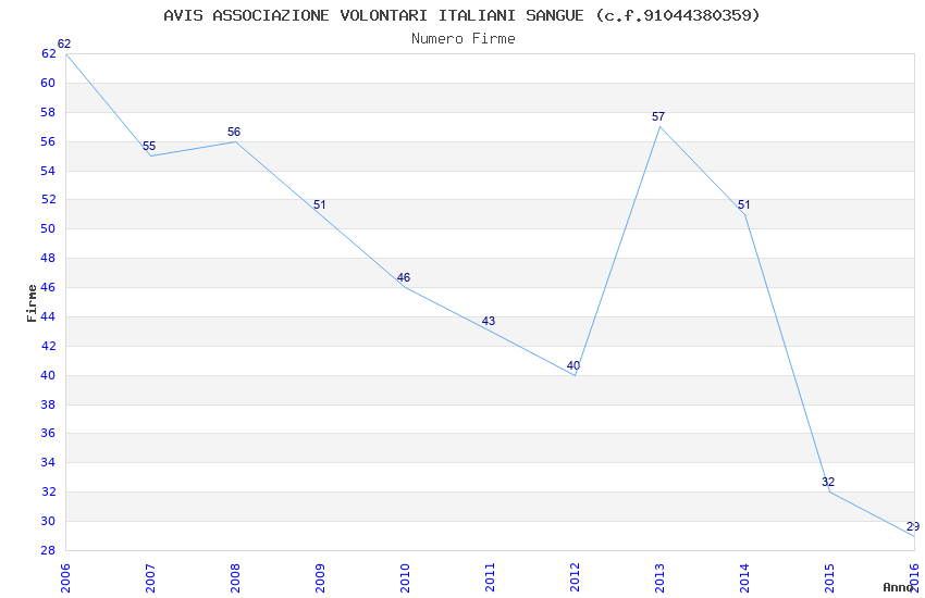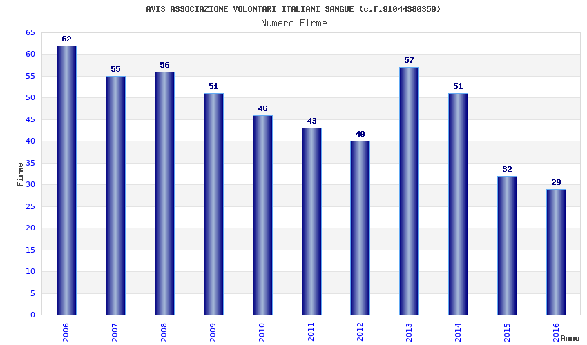 | Anno | Firme | Importi | Media | Naz. | Reg. | Prov. | Comu. |