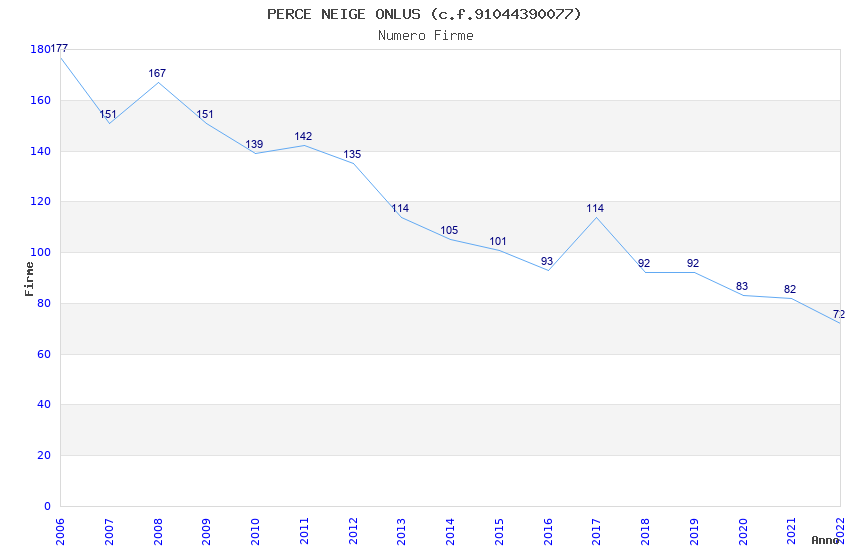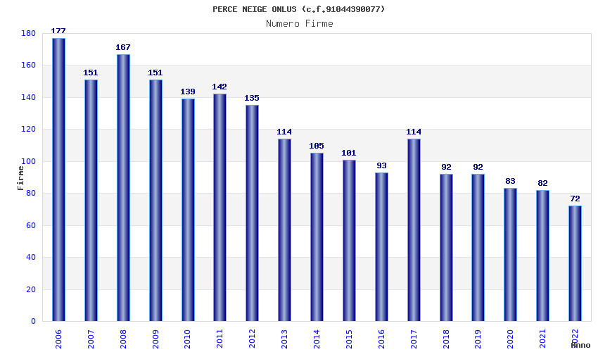 | Anno | Firme | Importi | Media | Naz. | Reg. | Prov. | Comu. |