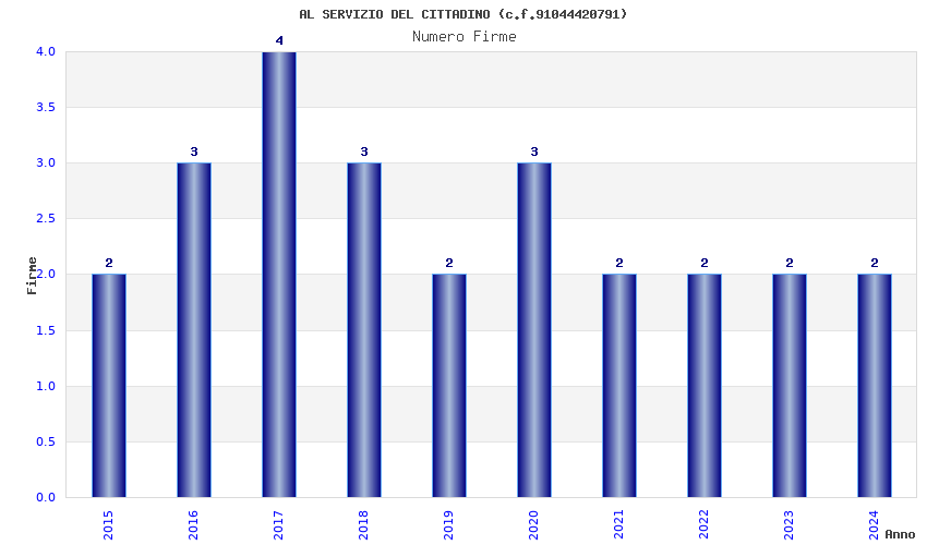 | Anno | Firme | Importi | Media | Naz. | Reg. | Prov. | Comu. |