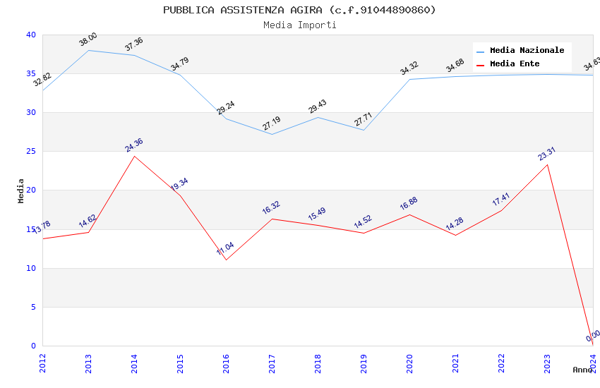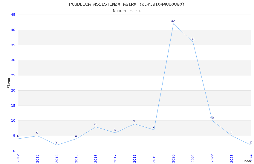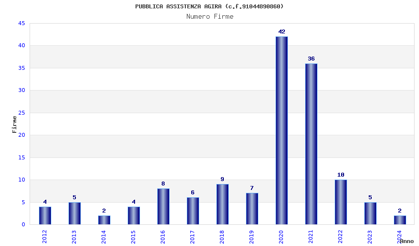 | Anno | Firme | Importi | Media | Naz. | Reg. | Prov. | Comu. |
