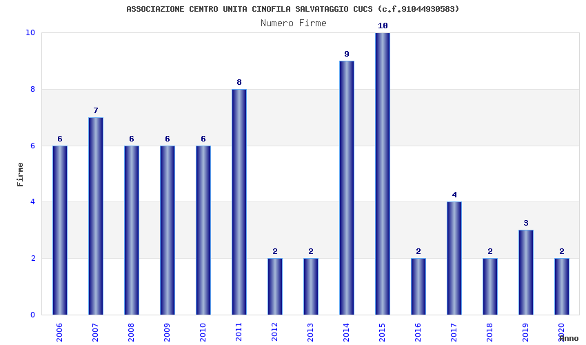 | Anno | Firme | Importi | Media | Naz. | Reg. | Prov. | Comu. |