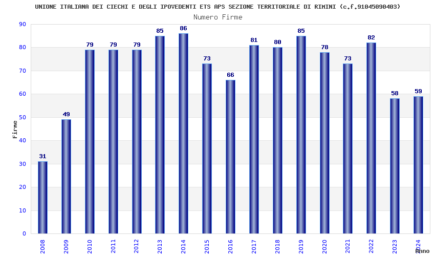 | Anno | Firme | Importi | Media | Naz. | Reg. | Prov. | Comu. |