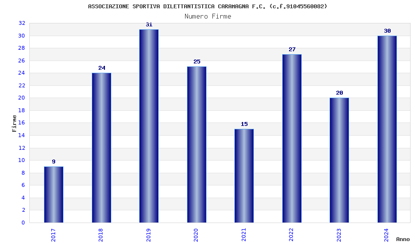 | Anno | Firme | Importi | Media | Naz. | Reg. | Prov. | Comu. |