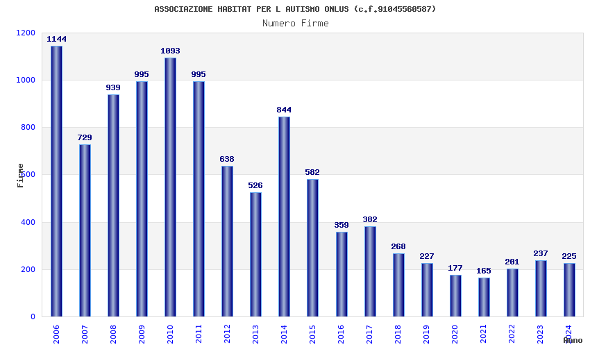 | 2024 | 225 | 9.606,29 | 42,69 | 5.168 | 708 | 647 | 581 |