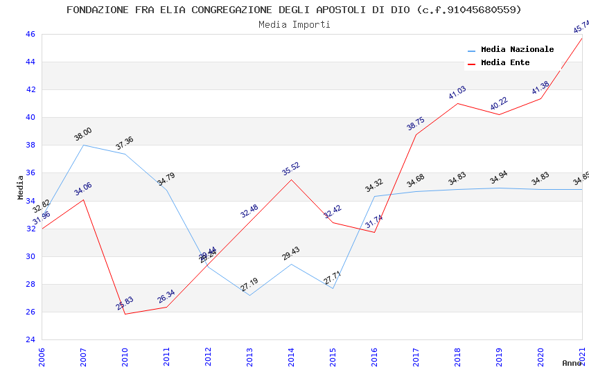 | Anno | Firme | Importi | Media | Naz. | Reg. | Prov. | Comu. |