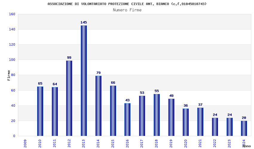 | Anno | Firme | Importi | Media | Naz. | Reg. | Prov. | Comu. |