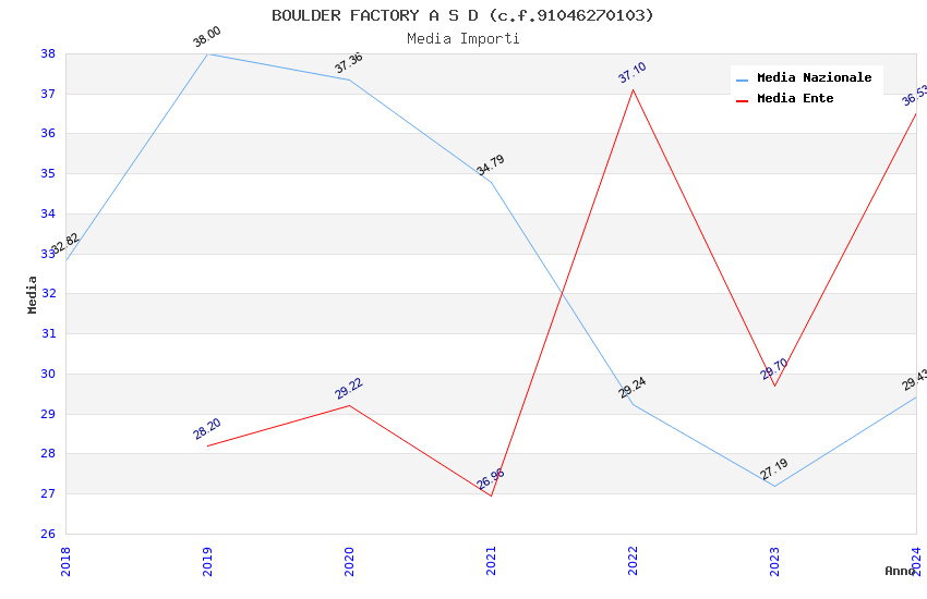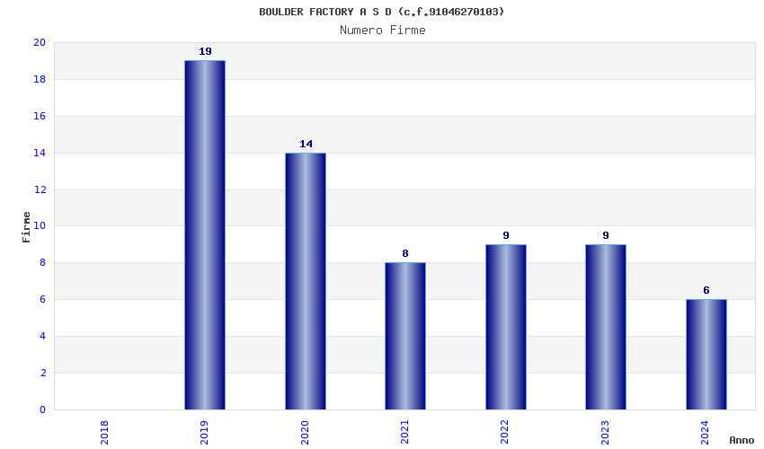 | Anno | Firme | Importi | Media | Naz. | Reg. | Prov. | Comu. |