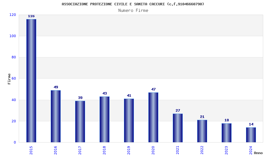 | Anno | Firme | Importi | Media | Naz. | Reg. | Prov. | Comu. |