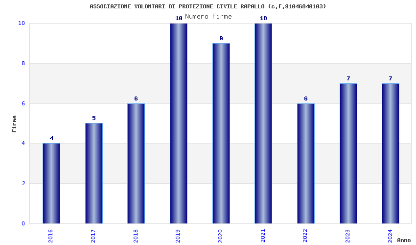 | Anno | Firme | Importi | Media | Naz. | Reg. | Prov. | Comu. |