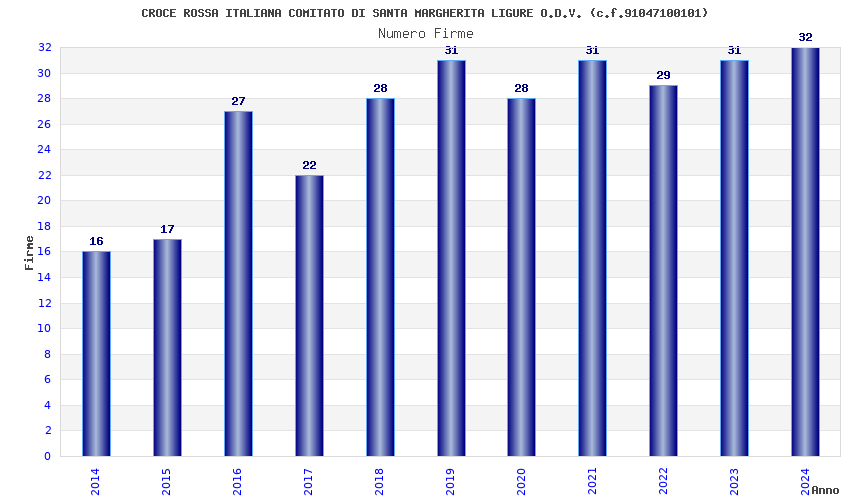 | Anno | Firme | Importi | Media | Naz. | Reg. | Prov. | Comu. |