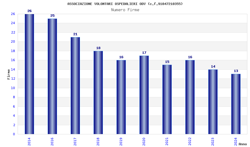 | Anno | Firme | Importi | Media | Naz. | Reg. | Prov. | Comu. |