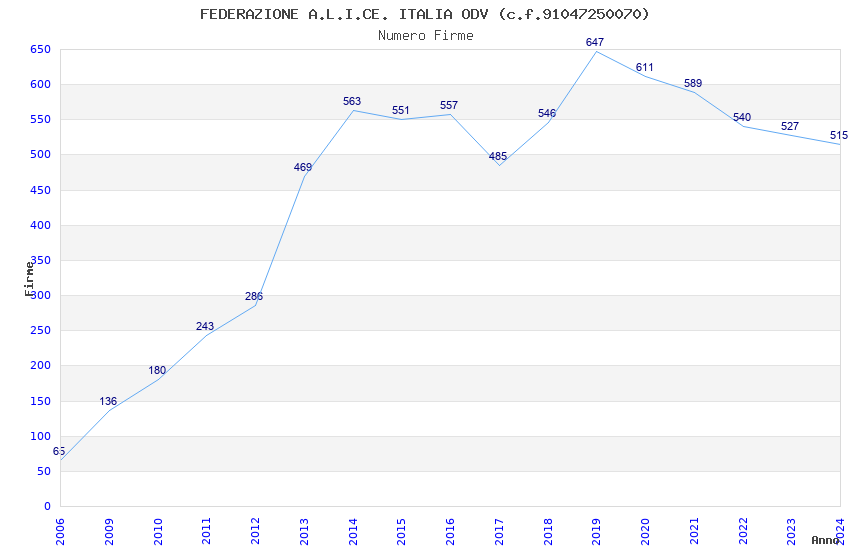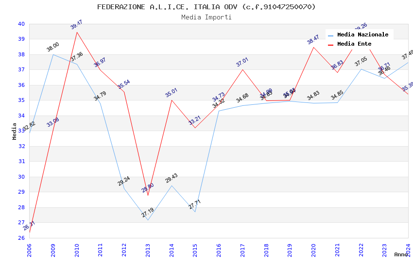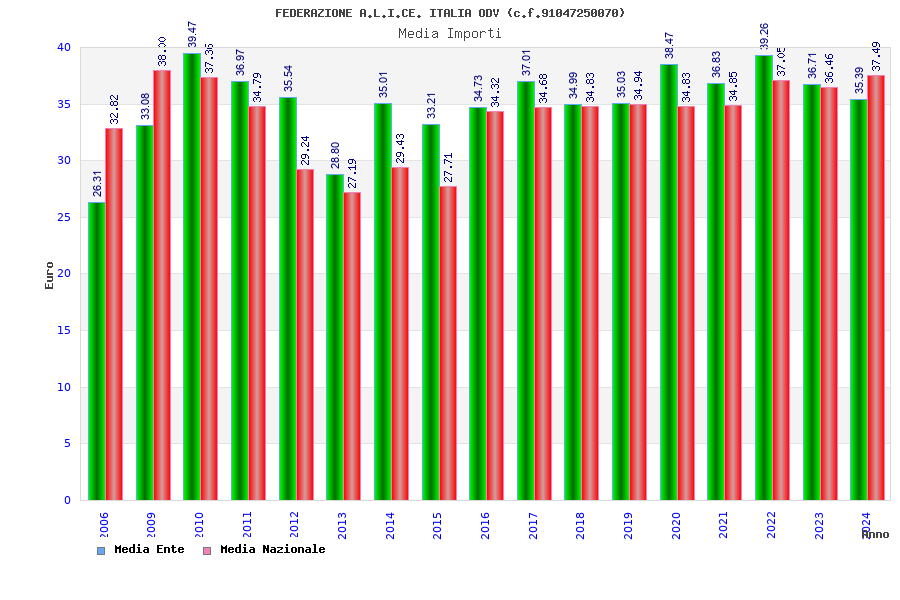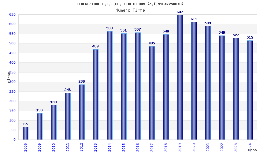 | Anno | Firme | Importi | Media | Naz. | Reg. | Prov. | Comu. |