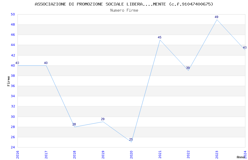 | 2024 | 43 | 1.271,10 | 29,56 | 32.737 | 630 | 130 | 17 |