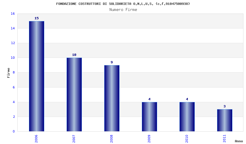 | Anno | Firme | Importi | Media | Naz. | Reg. | Prov. | Comu. |
