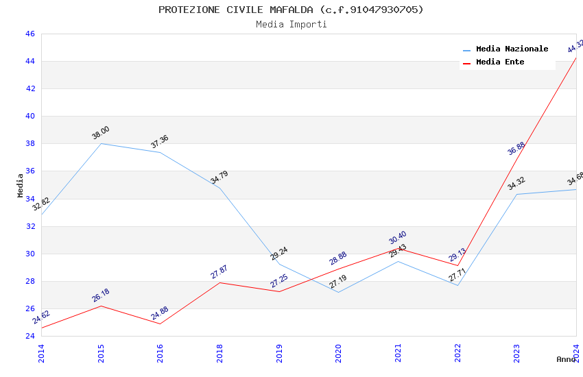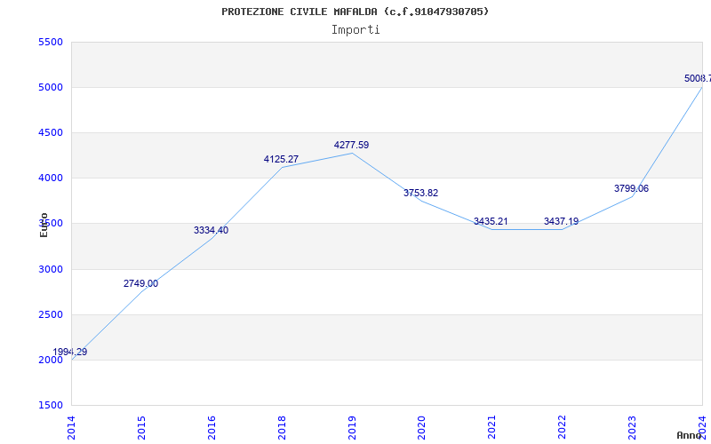 | Anno | Firme | Importi | Media | Naz. | Reg. | Prov. | Comu. |
