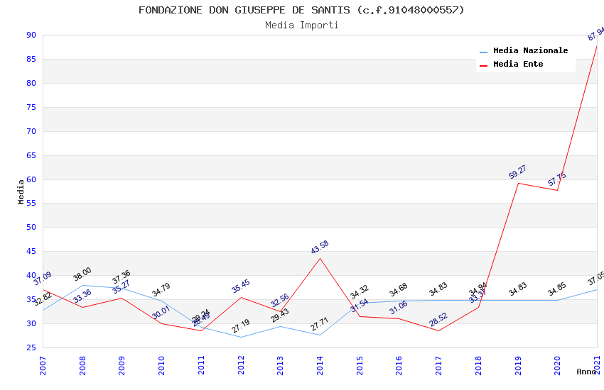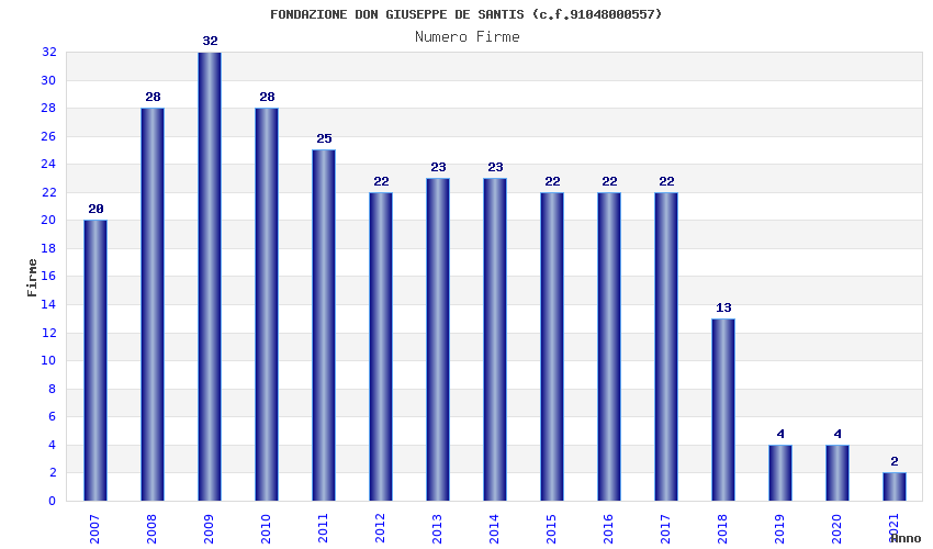 | Anno | Firme | Importi | Media | Naz. | Reg. | Prov. | Comu. |