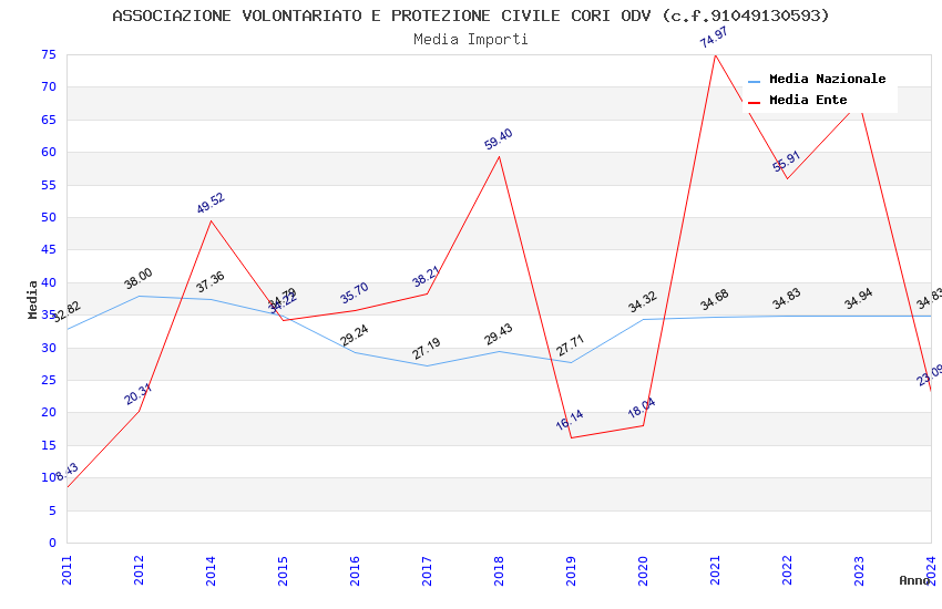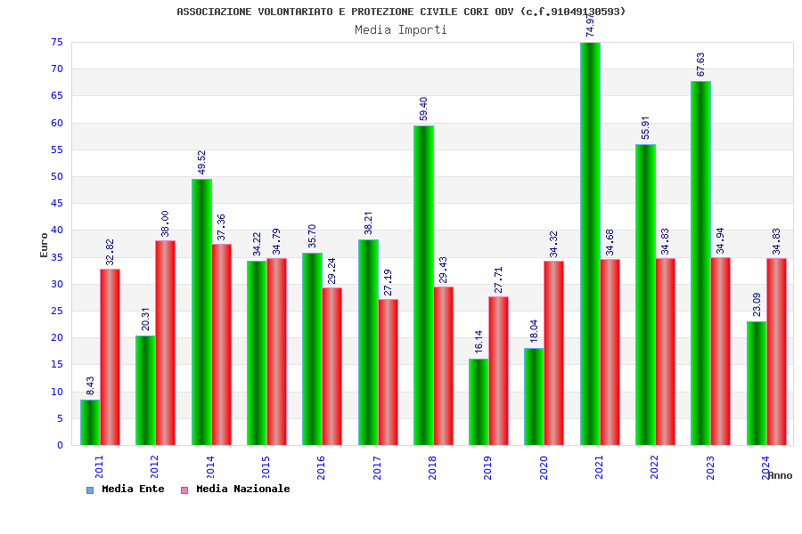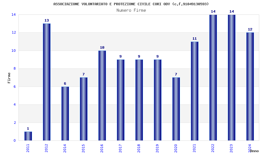 | Anno | Firme | Importi | Media | Naz. | Reg. | Prov. | Comu. |