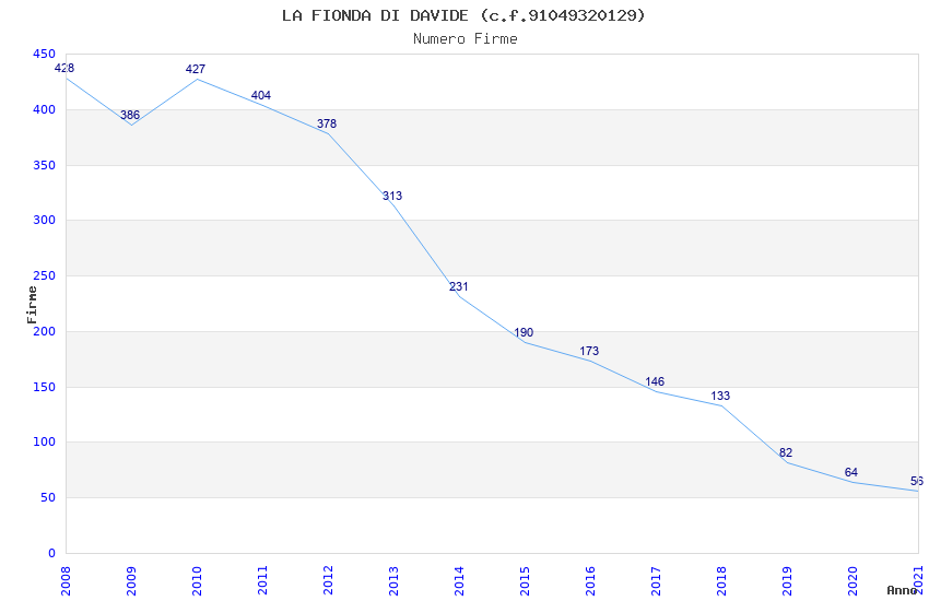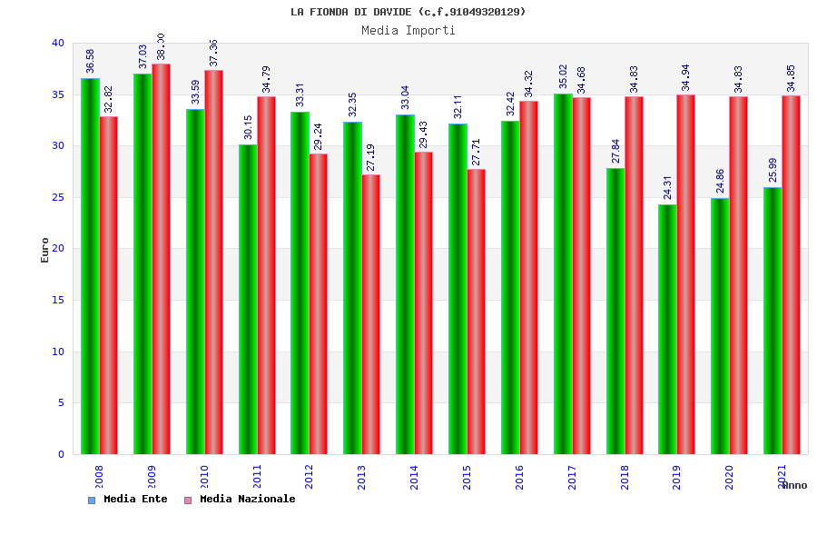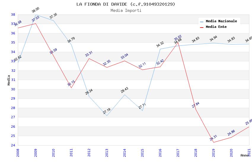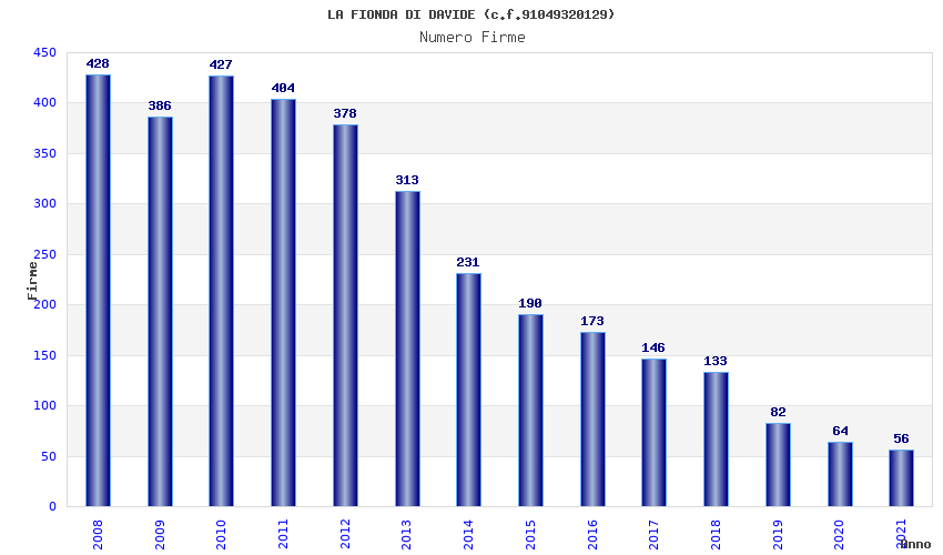 | Anno | Firme | Importi | Media | Naz. | Reg. | Prov. | Comu. |