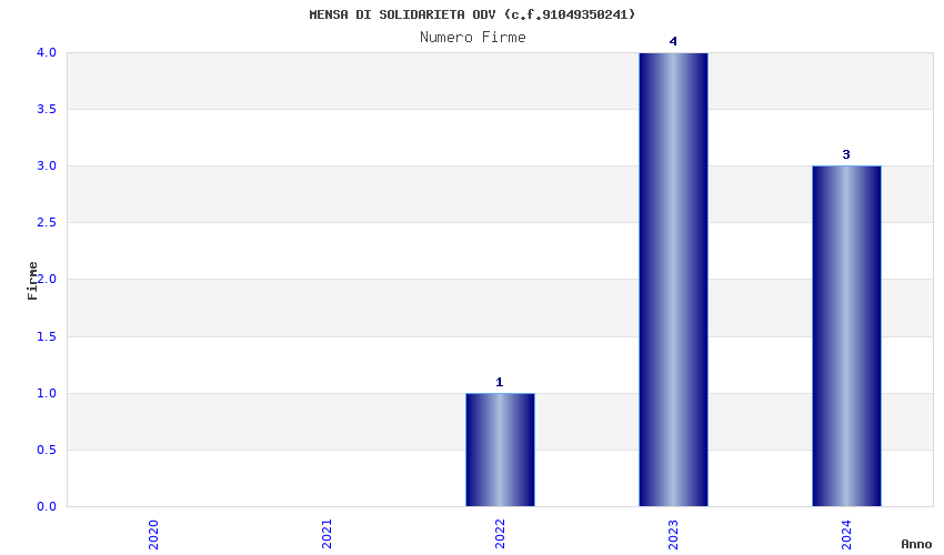 | Anno | Firme | Importi | Media | Naz. | Reg. | Prov. | Comu. |