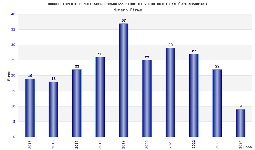 | Anno | Firme | Importi | Media | Naz. | Reg. | Prov. | Comu. |