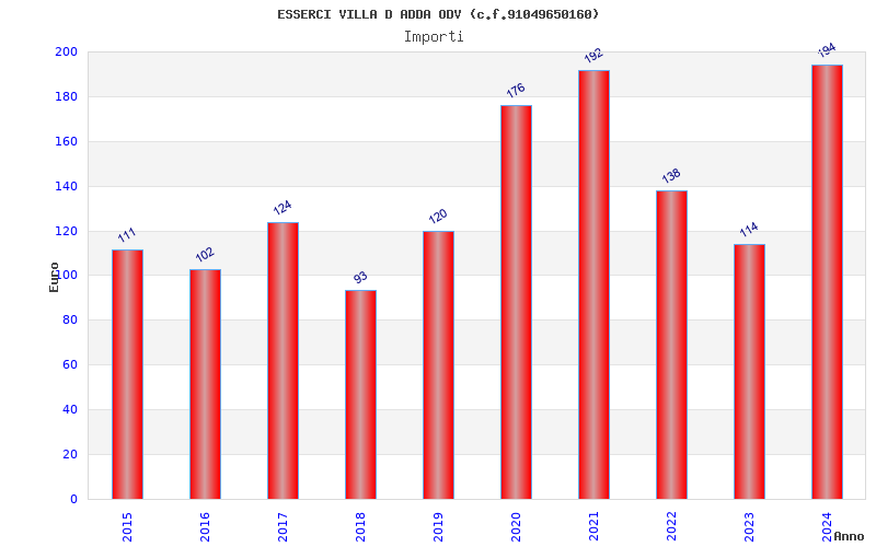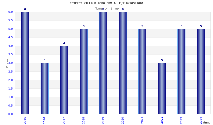 | Anno | Firme | Importi | Media | Naz. | Reg. | Prov. | Comu. |