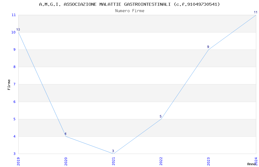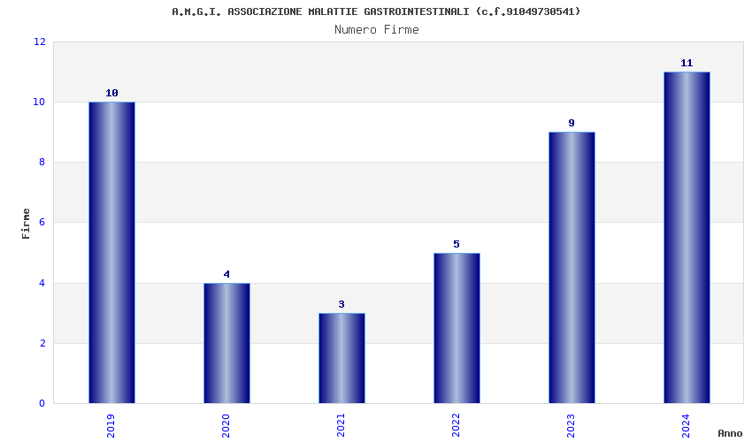 | Anno | Firme | Importi | Media | Naz. | Reg. | Prov. | Comu. |